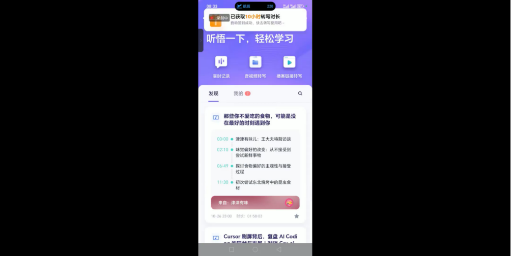 1. 今天又送了10个小时的会议内容,自动停止的实时录音功能限制了一次录音的时间,导致需要频繁中断并重新开始录音,增加了操作的复杂性和时间成本。